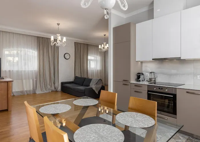 Kopā ar pašapkalpošanās iespējām, piemēram, pilnībā aprīkotu virtuvi, šis apartaments piedāvā viesiem ēdināšanai paredzētu vietu, kur viņi var baudīt savas maltītes. Restorāns Vest piedāvā Eiropas virtuvi un atrodas aptuveni 5 minūšu gājiena attālumā no naktsmītnes. Tuvākā autobusa pietura "Emila Melngaila iela" atrodas tikai īsu pastaigas attālumā no apartamentiem.